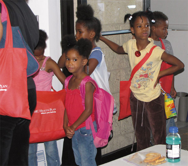 | NEW BACKPACK— Children at the Community Day event proudly sport their new backpacks. |