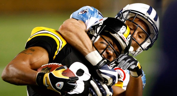 Kerry Collins was 22 of 35 for 244 yards, including a 14-yard scoring pass to Justin Gage, but, like Roethlisberger, didn’t have a reliable running game. Chris Johnson carried 15 times for 57 yards, but more than half of those came on a 32-yard run.