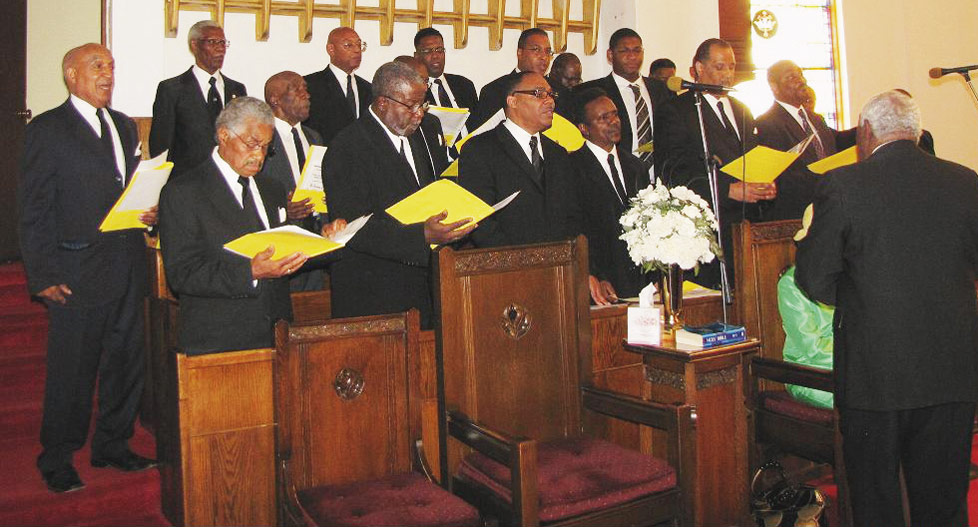 | COMBINED EFFORT—The Monumental Baptist Church male chorus and the Calvary Baptist Church male chorus are led by Deacon Curtis W. Price, director for Monumental. |
