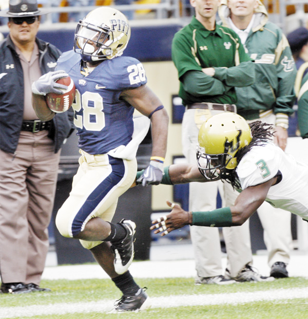Stull was repeatedly given time to throw by an offensive line that effectively controlled Bulls pass rushers George Selvie and Jason Pierre-Paul. He found Dickerson for 20 and 22 yards on Pitt’s first possession to set up his 2-yard scoring pass to backup tight end Mike Cruz, the freshman’s first college catch. Dickerson later made his ninth TD catch of the season.