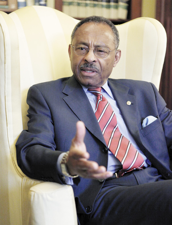 | KEY PLAYER—Sen. Roland Burris, D-Ill., is interviewed by the Associated Press in his Capitol Hill office in Washington, Oct. 15. |