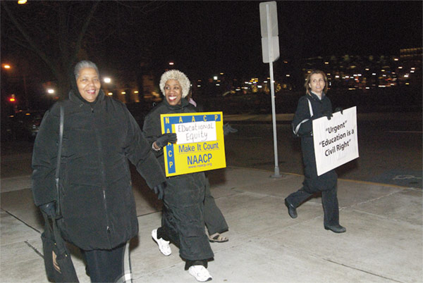 “All students don’t have the same opportunity to learn. All students don’t have access to the same resources. There’s a difference between the way we treat students,” said NAACP education chair Marilyn Barnett, Ph.D. “That’s like giving one kid a computer and another kid a typewriter. We are going to be the drum majors for justice.”
