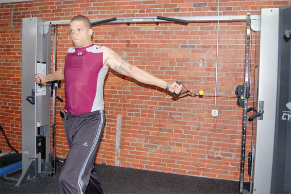 | NO PAIN NO GAIN—Fitness trainer Charles Cook exercises before his next client. |