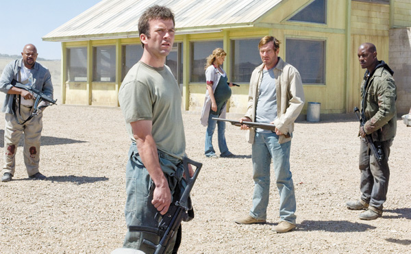 | ON LOCATION —Tyrese Gibson, far right, with cast from the movie “Legion.” |