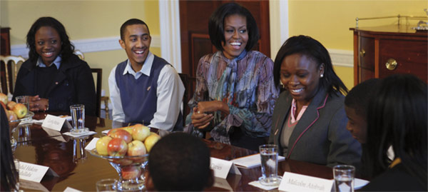 WASHINGTON (AP)—Michelle Obama, the president’s wife, told student essay contest winners from London on Feb. 18 that they have shown they are not afraid of the hard work that will take them somewhere in life.
