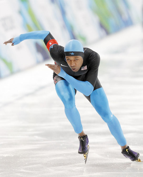 | GOLD AND SILVER—Gold medalist USA’s Shani Davis skates during the men’s 1000 meters race at the Richmond Olympic Oval at the Vancouver 2010 Olympics in Vancouver, British Columbia, Feb. 17.