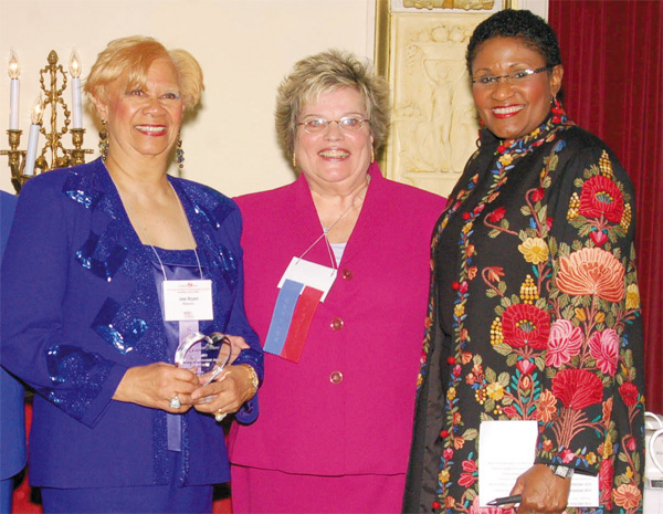 PROUD AWARDEE—From left: Jean Bryant, founder of Miss Black Teenage Pageant, Judith A. Bannon, executive director of SIDS, and Brenda Waters of KDKA-TV.