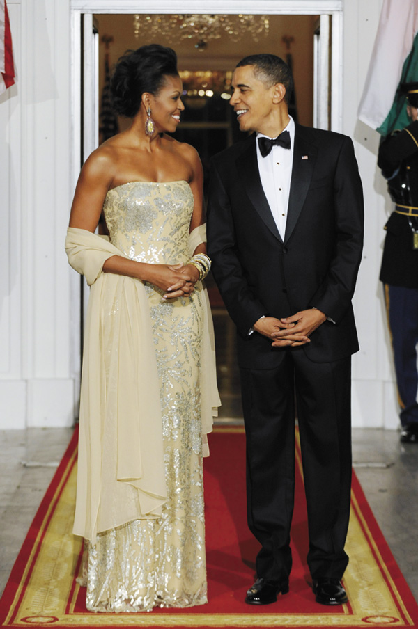 But when Michelle Obama wore, in the words of designer Naeem Khan, a “sterling-silver sequin, abstract floral, nude strapless gown” to a state dinner at the White House—and it was reported as such—that sparked questions about the definition of nude and its relation, if any, to the wearer’s skin color.