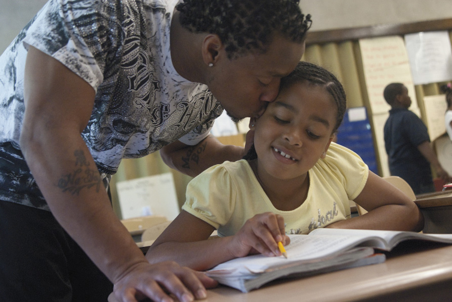 | PRECIOUS MOMENTS—From left: Troy and Natala Gonzalez share a bonding moment as he lends a hand with a classroom assignment. |