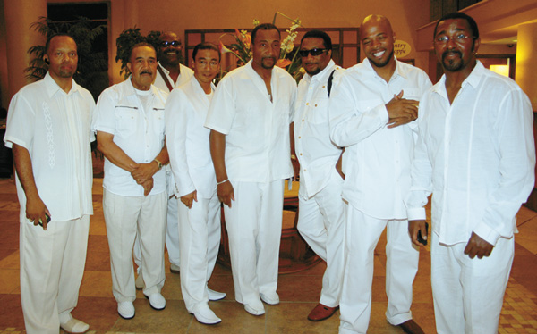 | THE MUSIC MEN—Ronnie Biggs, Charles Carter Sr., Gurdy Metz, Jacques Burvick, Chaz Carter, Winston Carter, Danny Boy and Al Everson. |