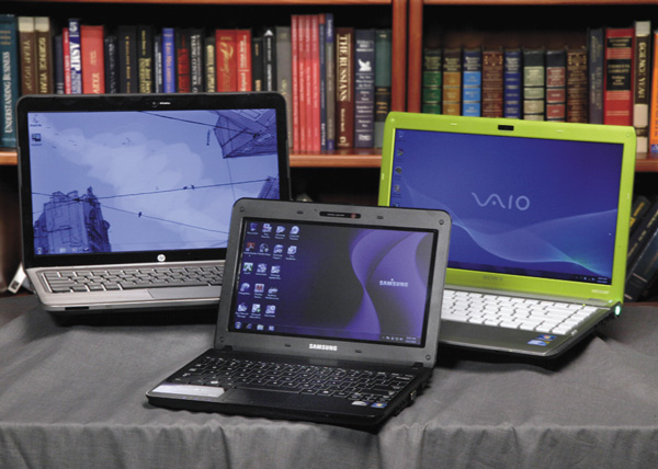 | NEW MODELS—The HP Pavilion dm4, left, the Sony Vaio, right, laptops and the Samsung NB30 netbook are shown in this photo, in New York, Aug. 11. |