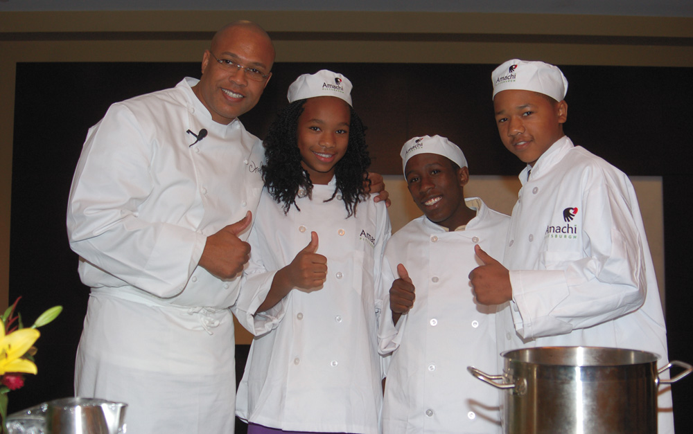 Henderson was the perfect match for Amachi Pittsburgh’s signature event. Chef Jeff Henderson grew up in the streets of South Central, Los Angeles and ran a $35,000 per week cocaine operation by the time he was 19 years of age. He was arrested at 24 and spent 10 years in prison, where he developed a passion for cooking food instead of crack. Henderson made the commitment to turn his life around and upon his release he worked his way through the culinary world from dishwasher to executive chef at Café Bellagio in Las Vegas.