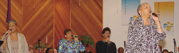 | FOUR LADIES PRAISING ONE LORD—Donna Allen, Rev. DeNeice Welch, Deborah Moncrief and Valetta O’Kelly. (Photos by Rossano P. Stewart) |