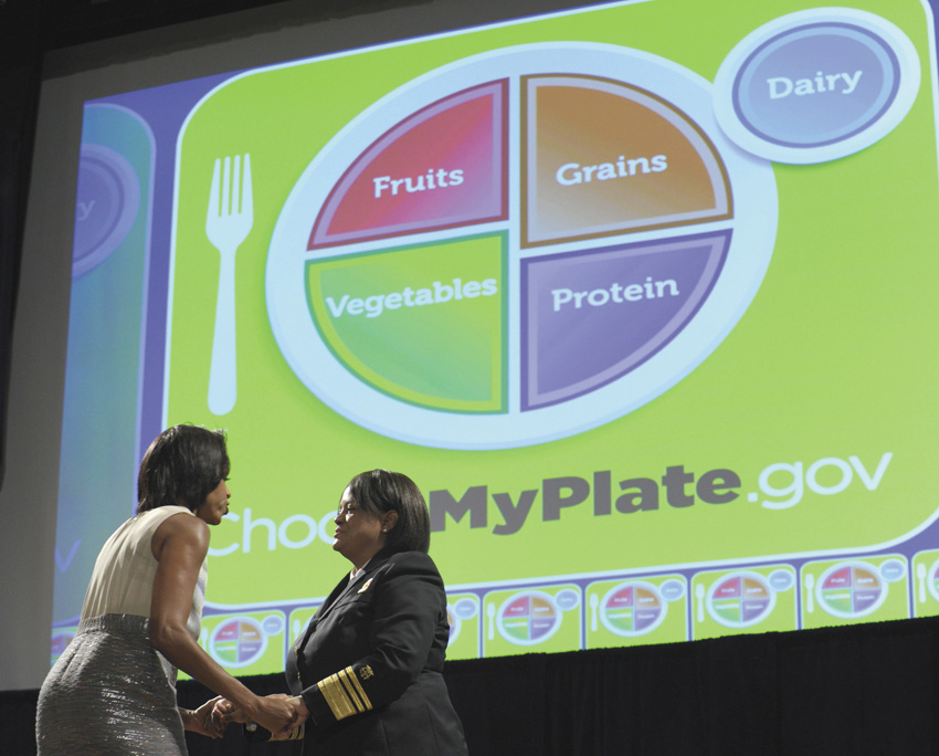 “We know Americans want to be healthy, but making those healthy choices is not easy, it’s hard,” said Surgeon General Regina Benjamin, who joined Mrs. Obama and Vilsack to unveil the plate. “We’re trying to make it easier.”