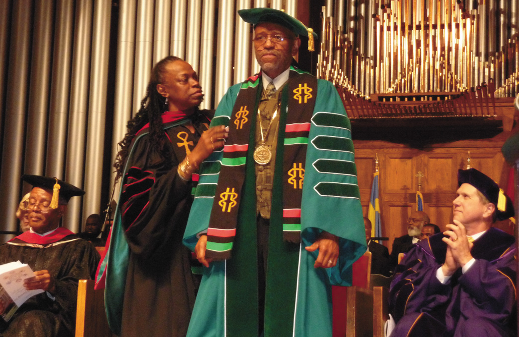 | ENSTOOLED—Reverend Dr. Ronald Peters is installed into his position as president during the Enstoolment Ceremony of his Presidential Inauguration in April. (Photos by Oscar Petit) |