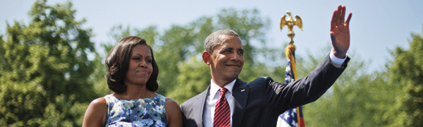 | SOLEMN OBSERVANCE—President Barack Obama and first lady Michelle Obama at the Vietnam Memorial on the National Mall on May 28. (AP Photo/Pablo Martinez Monsivais) |