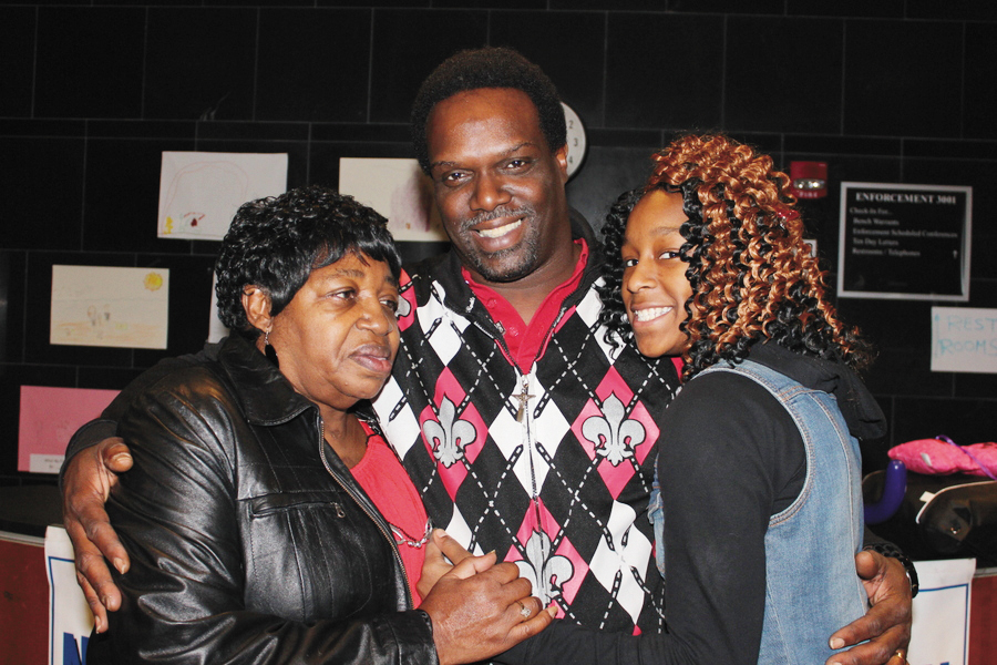 | WE ARE FAMILY—Verley and Mark Cabbagestalk stand with their newly adopted daughter Dae’Quannna Stevens, Nov. 17, at the Allegheny County’s Children’s Court. (Photo by J.L. Martello) |