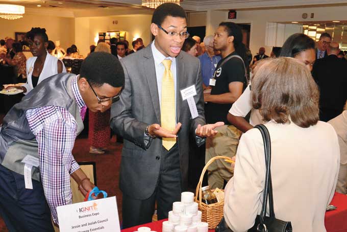 PROPER BUSINESS TOOLS—Young Jessie and Josiah Council explain their product to a customer. (Photos by Rossano P. Stewart)