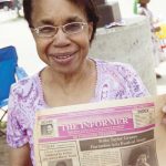 HISTORY—Laverne King holds a copy of the June 1992 Informer with an article on Harambee.