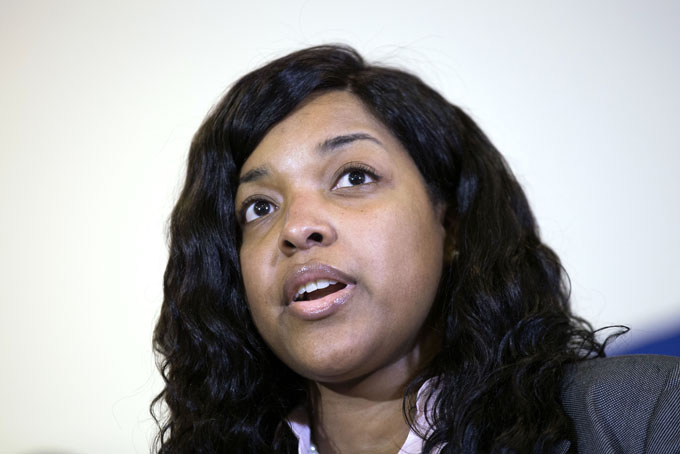 In this Oct. 28, 2014, file photo, Amber Vinson, 29, the Dallas nurse who was being treated for Ebola, speaks at a news conference after being discharged from Emory University Hospital in Atlanta. (AP Photo/David Goldman, File)