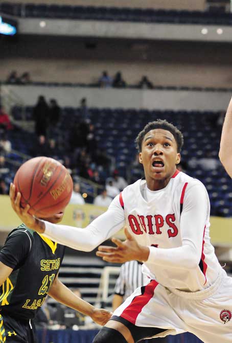 The Quips had five players score at least nine points. Jassir Jordan had 14, Darrien Fields 12, and Chucky Humphries 9. Kaezon Pugh, a 6-foot-2 forward, is considered one of the top junior football players in the state, scored 11 points and led the team with 12 rebounds.