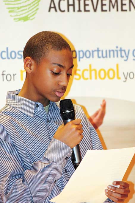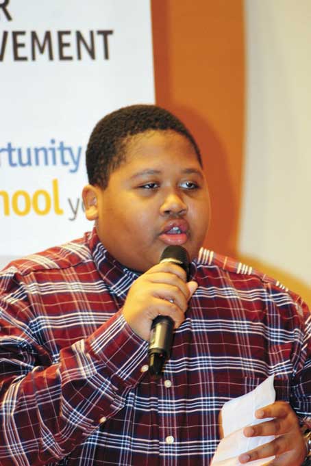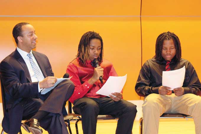 Twelve Higher Achievement middle school scholars participated in a reading of original poems on at the Hill House’s Hillman Auditorium.