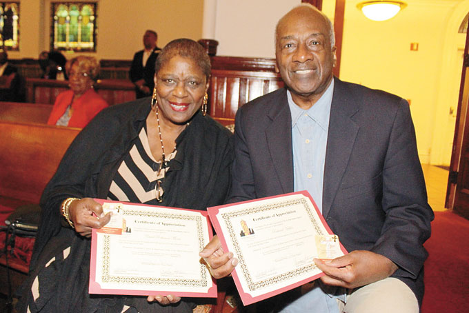 HONOREES—Many were honored for 50 plus years of service to the church, including Carol Robinson Moore, left, and Richard Nickols.