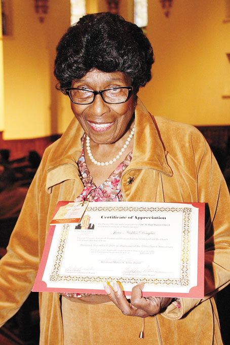 JEAN NICKLOS DOUGLAS was one of many honored for her more than 50 years of service to the church.