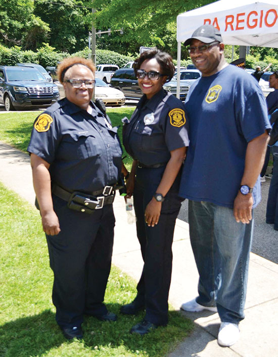 PITTSBURGH POLICE OFFICERS Angela Garrett, Tawna White and Jeff Crawford at the Zone 5 East Liberty annual Community Day/Open House, June 3. (Photo courtesy Western PA Fire Photography)