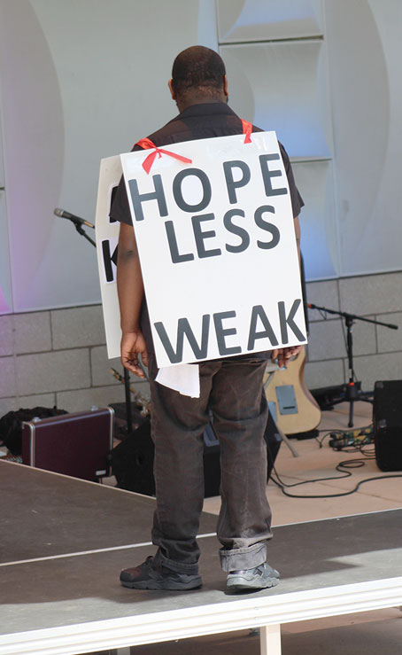 Before the picnic began TLC held their Sunday church service in the park’s amphitheater. They presented a very unusual fashion show featuring models with “labels” like bullied, inferior and hopeless.