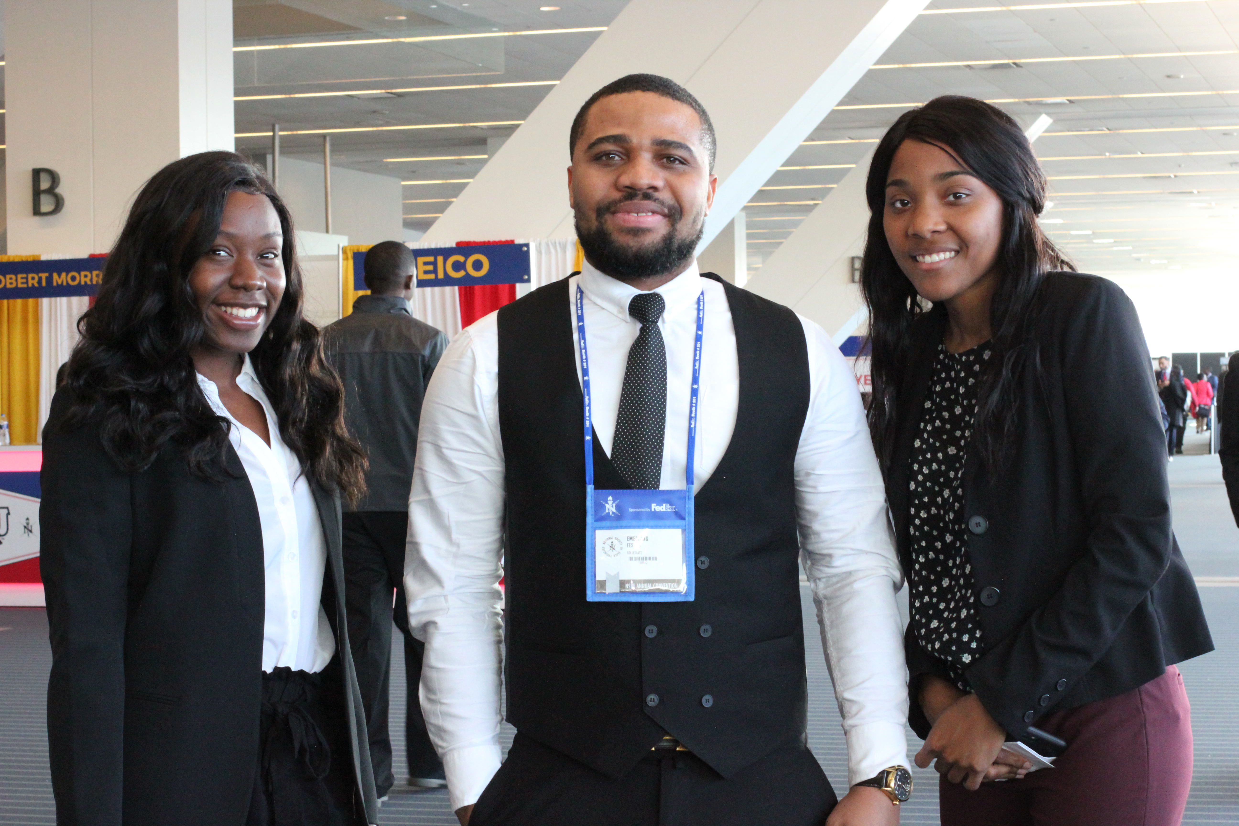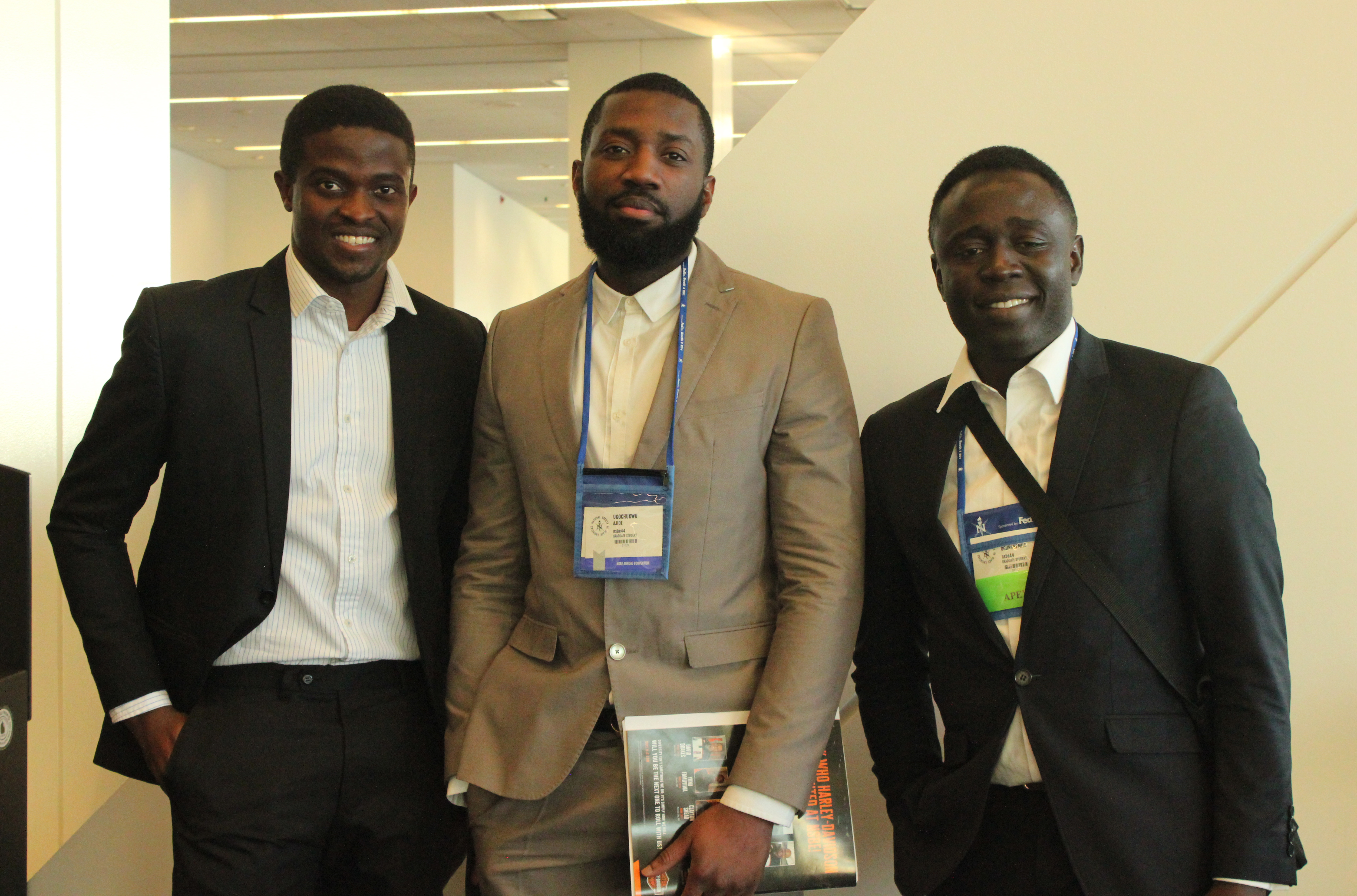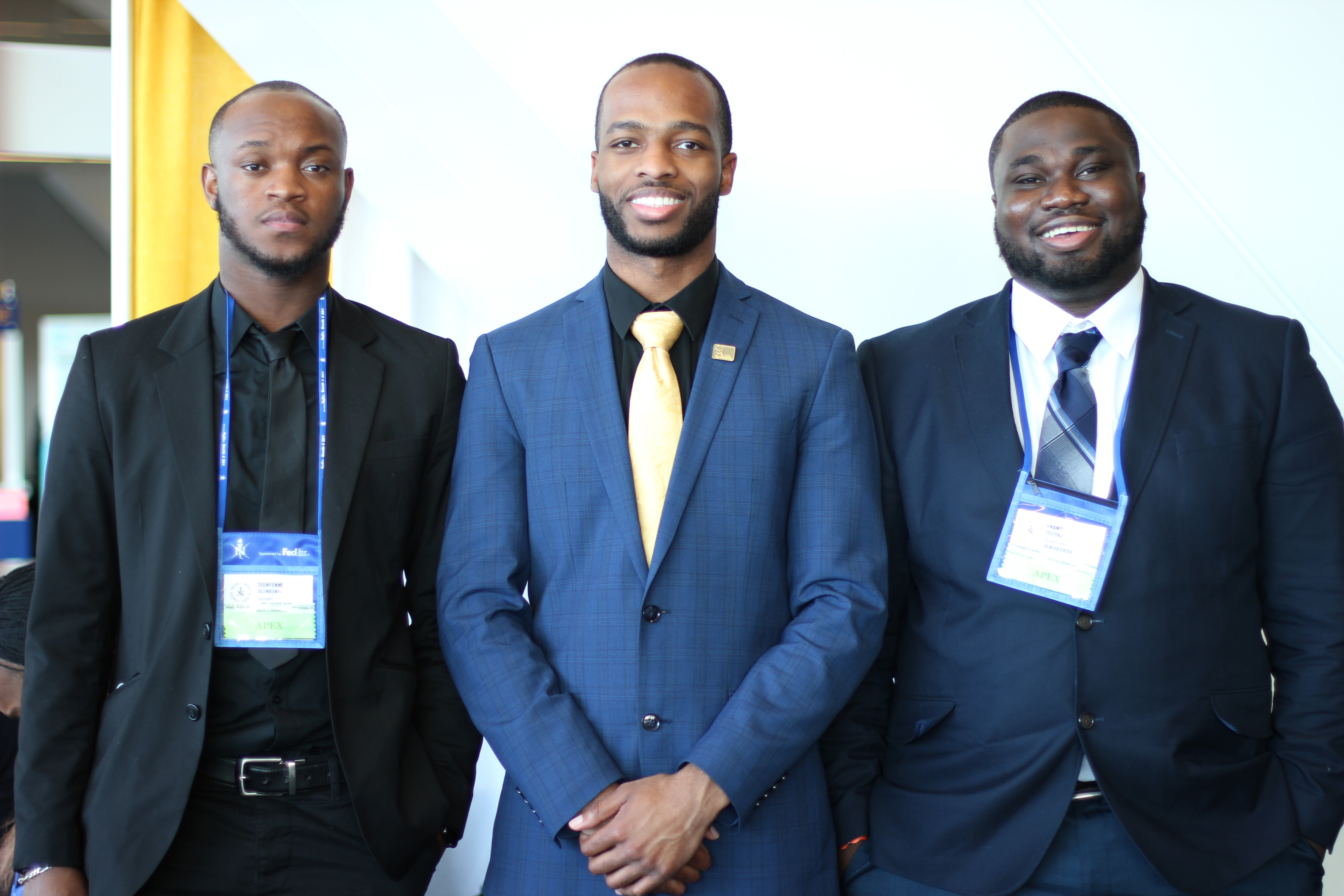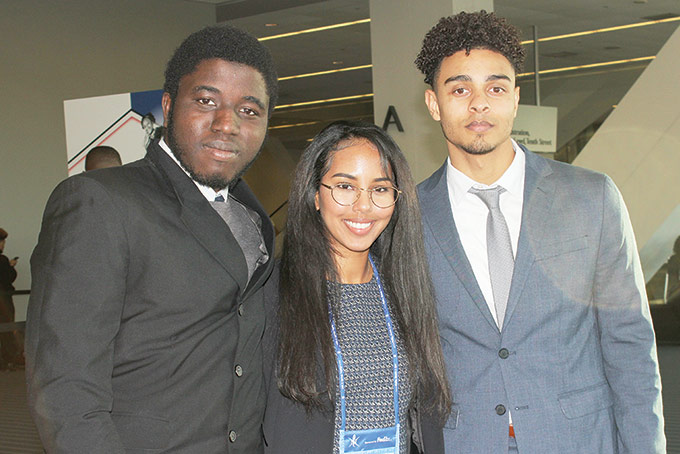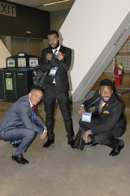 NSBE CONVENTION ATTENDEES—Hanibal Hunde, Washington State; Favour Ojika, St. Cloud St., Ikenna Ezeonwumelu, Louisiana State.