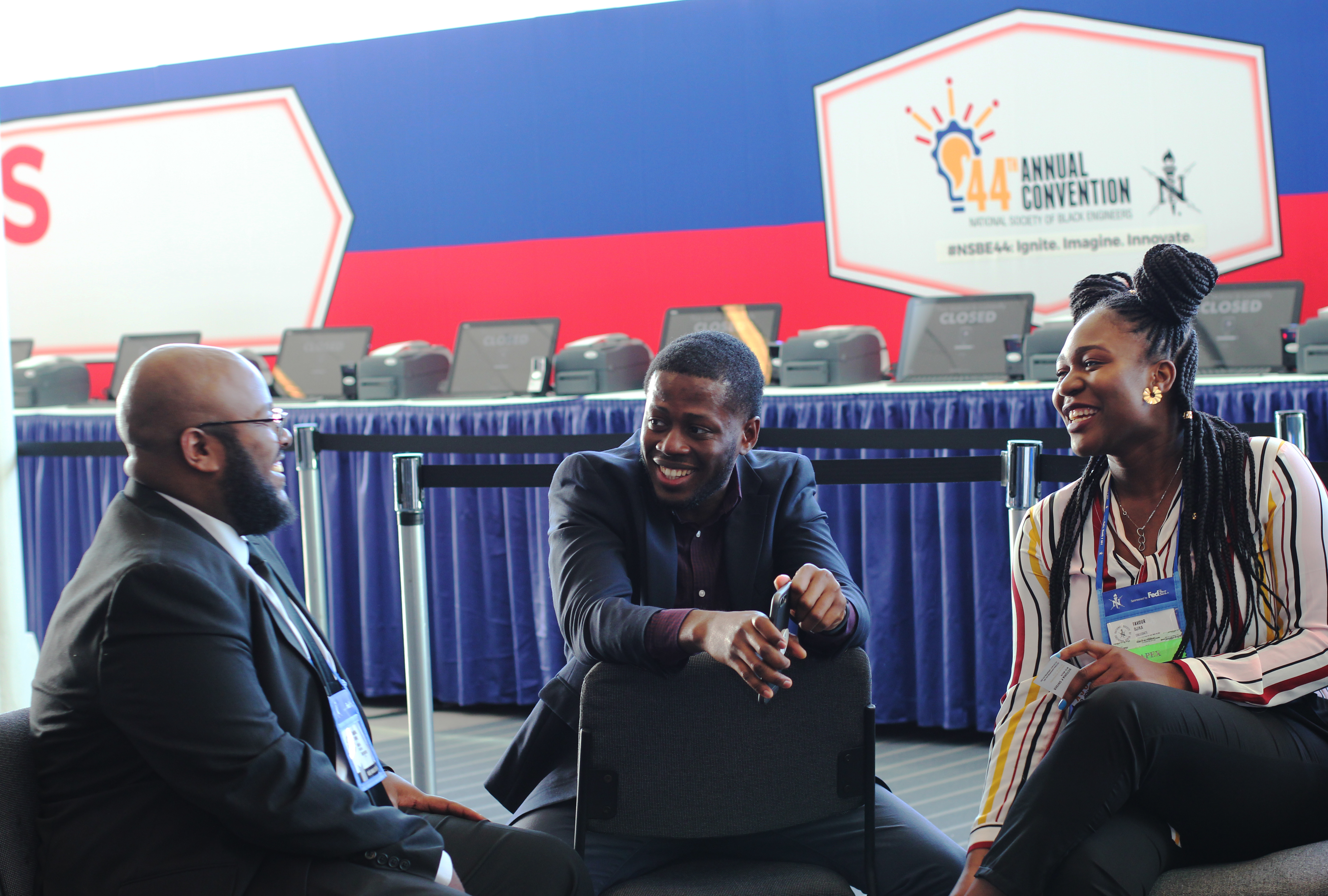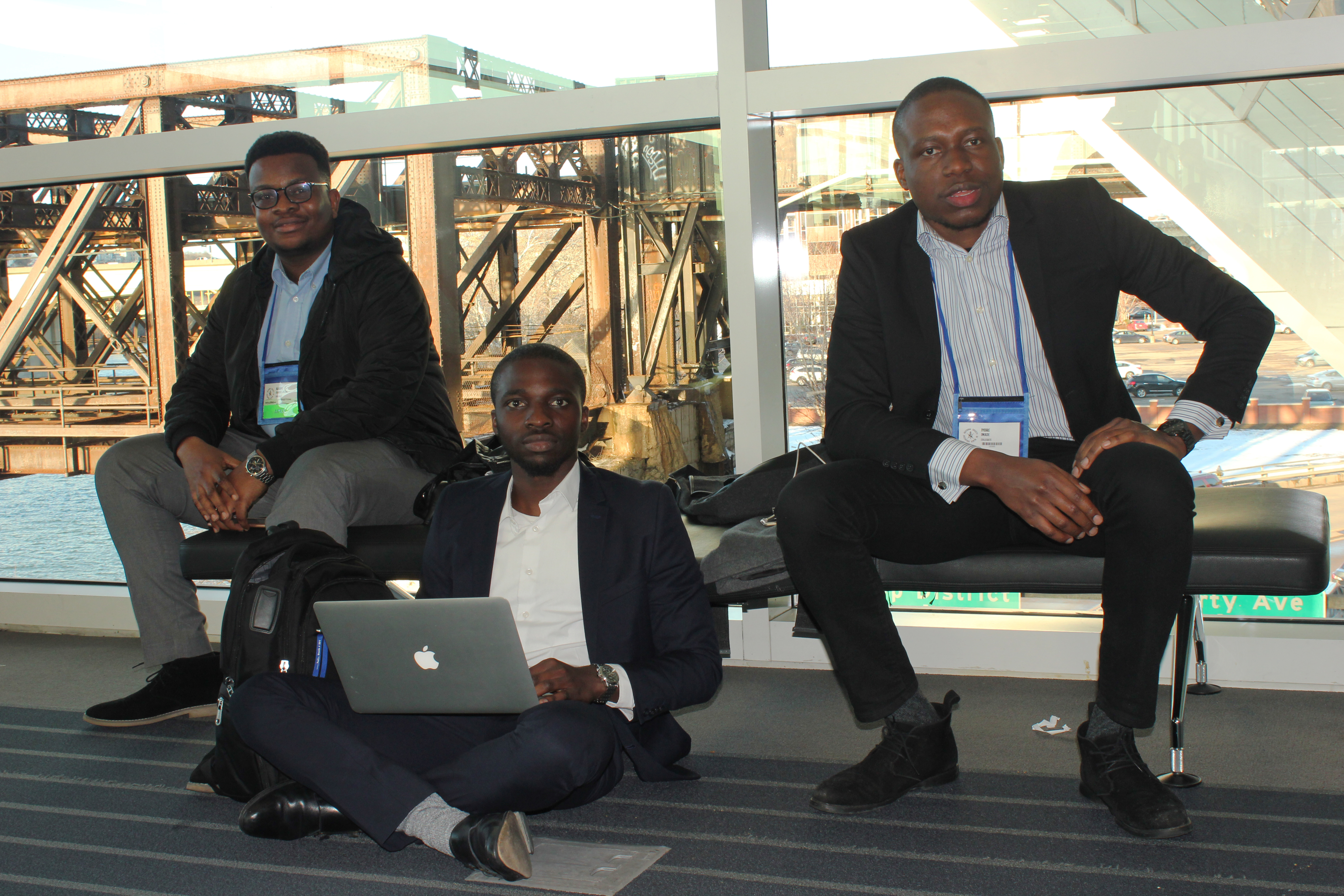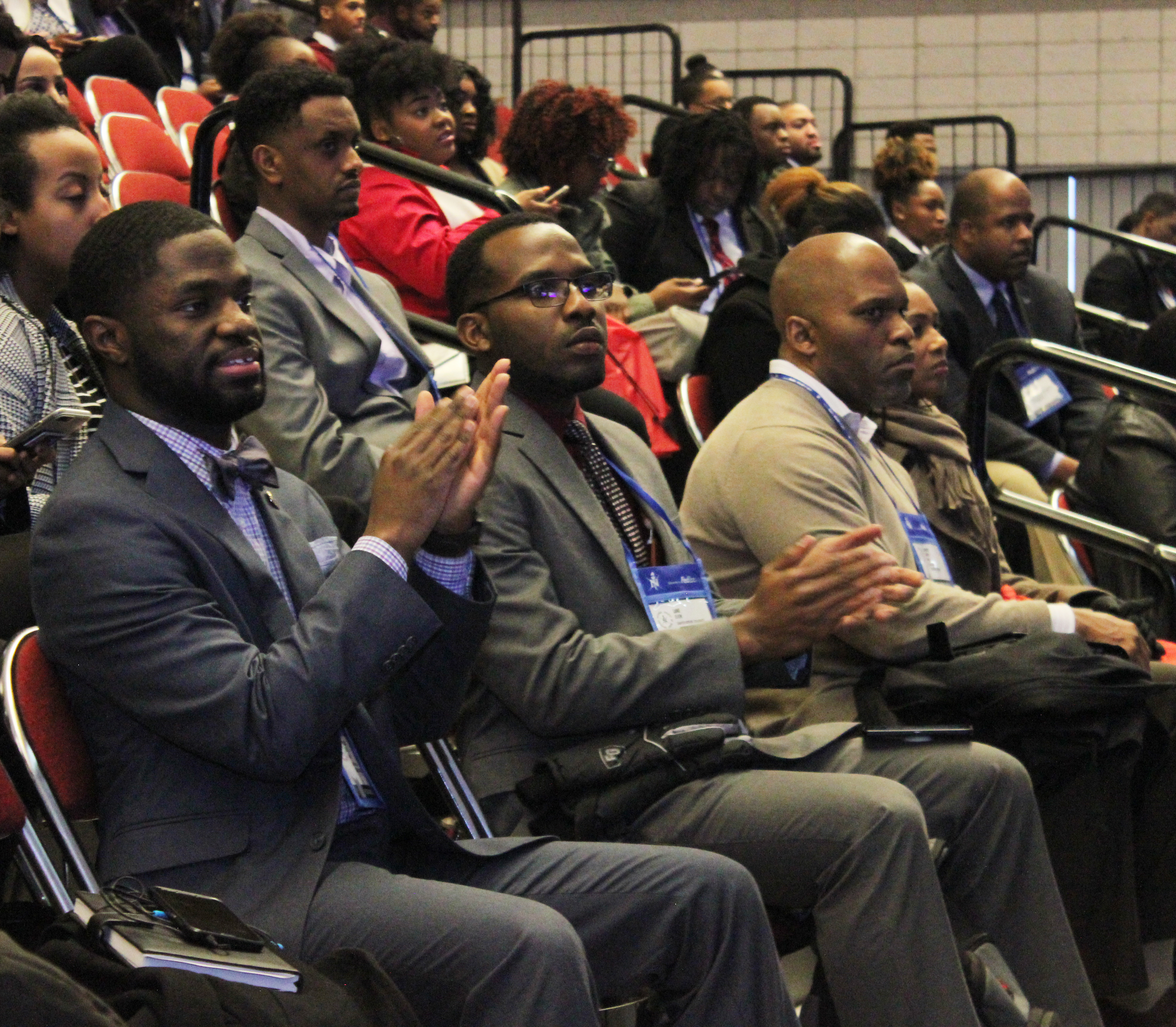 NSBE CONVENTION ATTENDEES—Hanibal Hunde, Washington State; Favour Ojika, St. Cloud St., Ikenna Ezeonwumelu, Louisiana State.