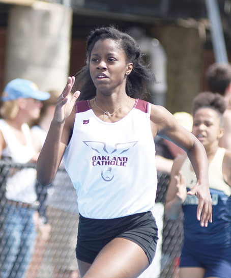 OAKLAND CATHOLIC’S MACEY CRAWFORD finished in second place in the 100-meter hurdles.