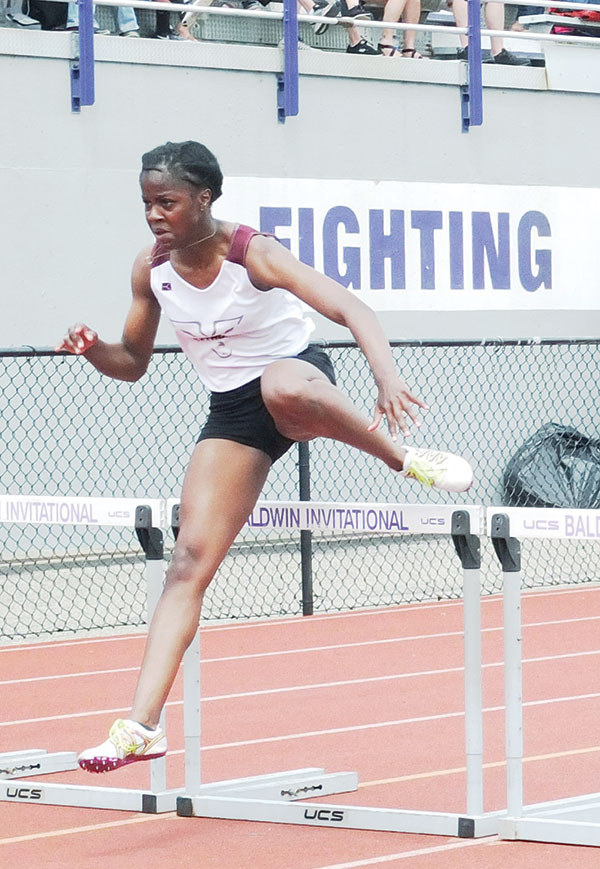 JAYLA ELLIS OF OAKLAND CATHOLIC won the Class 3A hurdles event.