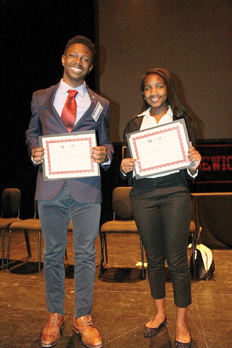 JERAMAYA GREMBY AND BROOKLYNNE LOWRY receive scholarships at FAME’s 20th annual celebration, April 18, at the August Wilson Center.