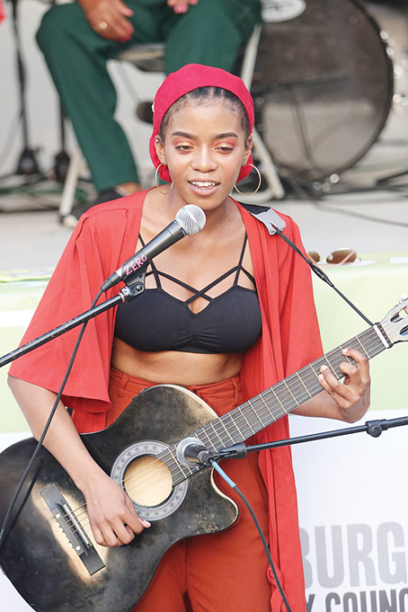 LEIA RHODES, performing at the Harambee Black Arts Festival, a three-day event that was held, Aug 3-5, in Homewood. (Photos by J.L. Martello)
