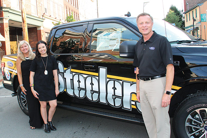 Technical designer Heather Jankosky said Tomlin has been in business for five years and the shop is open to the public from 11 a.m. to 5 p.m. Tuesday through Saturday. Three people work in the shop where they create the samples, design the garments and sell the finished product. Guests were able to tour the space before the fashion show and many enjoyed taking pictures with Steely McBeam (the Steelers’ mascot) and posing with coach Mike Tomlin’s Super Bowl ring and Lombardi Trophy. Coach Mike actually showed up for his own personal tour.