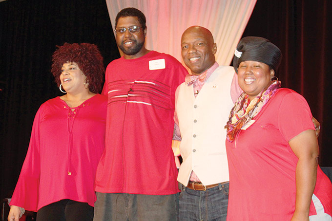 The afternoon of laughter, shopping and health workshops was presented by the American Heart Association and the American Stroke Association. This year AHA & ASA paid tribute to the nursing profession and presented awards to Pittsburgh Black Nurses in Action and nursing sorority, Chi Eta Phi. Dawndra Jones and Joan Mitchell accepted the awards. Nearly 600 guests found out about F.A.S.T. (face drooping, arm weakness, speech difficulty and time to call 911) via the personal story of stroke survivor Stan Askew and a lively game of AHA & ASA Jeopardy! With Kim Coles as the Jeopardy! host and Stan Askew, Eric Cofield and Dionna Rojas Orta as the contestants, the audience was in stitches as the trio gave quirky answers to some very serious questions. When the correct answers were revealed the audience learned a great deal about stroke prevention via the power of laughter.