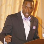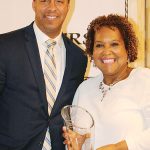 EVAN FRAZIER presents Lynne Hayes-Freeland with Talk Magazine’s “Person of the Year” award.