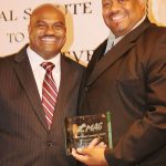 RICARDO J. WILLIAMS, left, presents an award to honoree Donald C. Walker.