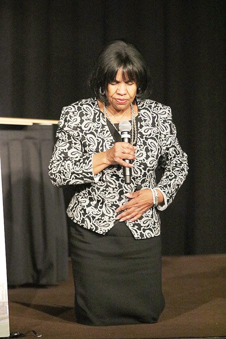 REV. A. MARIE WALKER says a prayer before the event begins.