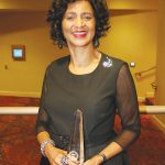THE HONOREES—Judge Dwayne Woodruff, left, and Urban League of Greater Pittsburgh CEO Esther Bush, right, with honorees Andrea Mahone, Glenn Mahone, Kim Clark, and a representative from Dollar Bank, second from left. (Photos by Courier photographer J.L. Martello)