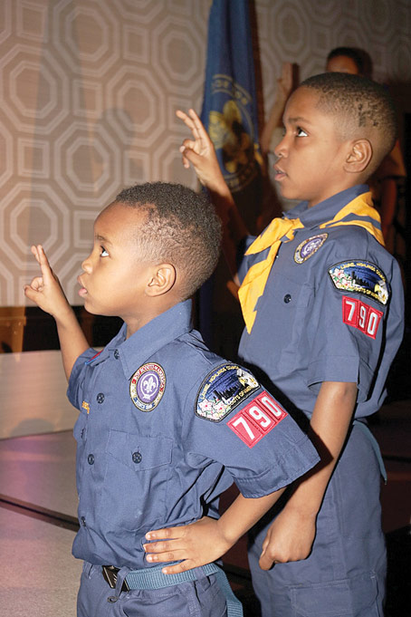 THE COLOR GUARD SCOUTS FROM TROOP 790, during the Whitney M. Young Jr. Dinner Awards. The purpose of the awards dinner is to recognize, among others, those who have provided outstanding service to the development of Scoutreach. David Motley is the Dinner Chairman, and Scoutreach Board Chairman is Andrew Hughey.