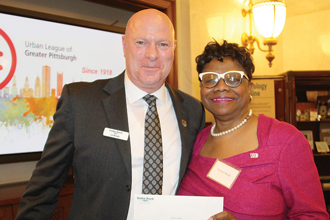 During a brief program, Robert Hill, retired Vice Chancellor for Public Affairs and Chief Communications Officer, University of Pittsburgh, shared the early story of African Americans and Dollar Bank when the wages were 90 cents a day and anyone could open an account if they had one dollar. James McQuade, Dollar Bank President and CEO, and Carol A. Neyland, Senior Vice President, Community Development, acknowledged several individuals that have been vital to the history of Dollar Bank and minorities: Pam Golden contributed the doctors bag that belonged to John Paul Golden, M.D., Mona Generett created the mortgage program for mothers in 1999 and the Urban League of Pittsburgh has recognized Dollar Bank as a Corporate Leader.