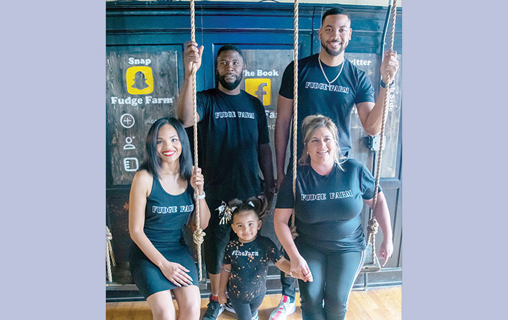PHOTO—Amber Greene, far left, Walt Rainey, center, Wes Lyons, right, and Molly Rainey are the owners of Fudge Farm. Also pictured is Walt and Molly Rainey’s daughter, Braxlynn. (Photo by Briana L. White)