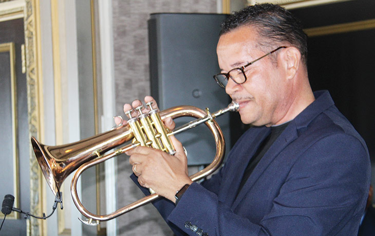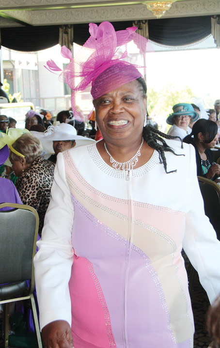 The luncheon is about the hats but just as important is the Servant’s Heart Award presented this year by Deaconess Ruth Thomas and Deaconess Cheryl Morand to First Lady Vickie Grigsby of Central Baptist Church. Vickie has served at Central Baptist for the past 23 years as First Lady, Ministers’ Wives and Women’s Ministry. The Deaconess Ministry expresses their love and gratitude to a very special woman of God. “She is a shining example of a woman who walks beside her husband in the ministry serving the people whom he shepherds.” The award was a surprise to Vickie Grigsby but the real surprise was the musical tribute performed by her husband Reverend Victor J. Grigsby. Rev. Grigsby dusted off his trumpet and played “You are the Sunshine of my Life” while the first lady was so appropriately dressed in sunshine yellow.