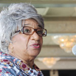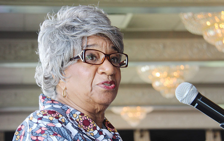 SERVANT’S HEART AWARDEE—First Lady Vickie Grigsby, center, with Deaconess Ruth Thomas and Deaconess Cheryl Morand
