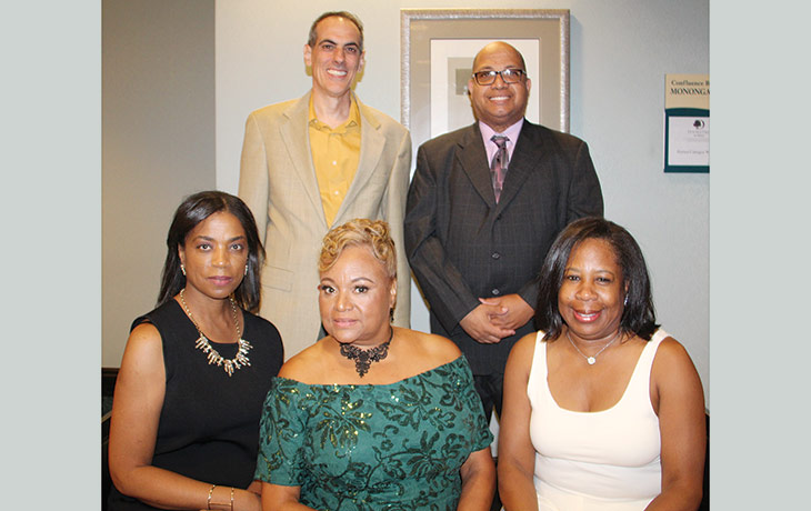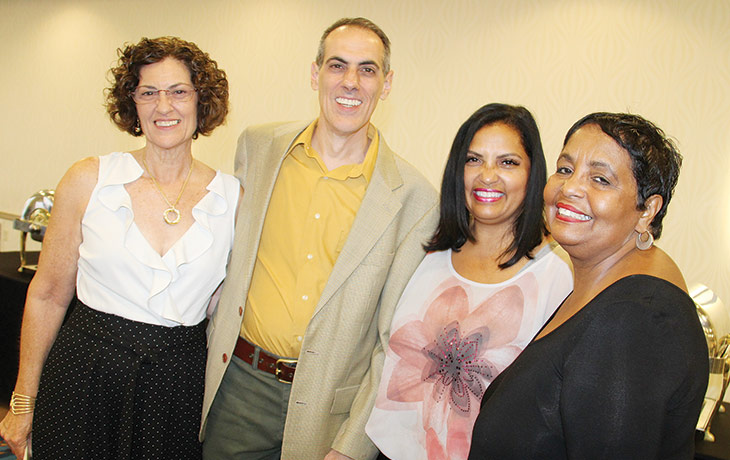 HOLY ROSARY ALUM—Rashall Brackney, Betsy Capone Worrall, Sister Sandy Kiefer and Ed Gainey