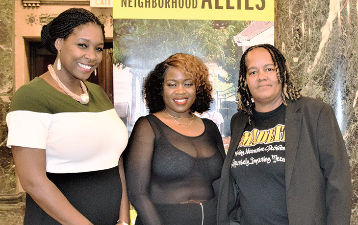 PRESLEY GILLESPIE, far left, with Denise Edwards, top left, Neighborhood Allies’ Ally of the Year, and other 2019 Healthy Neighborhood award winners. (Photos by Diane I. Daniels)