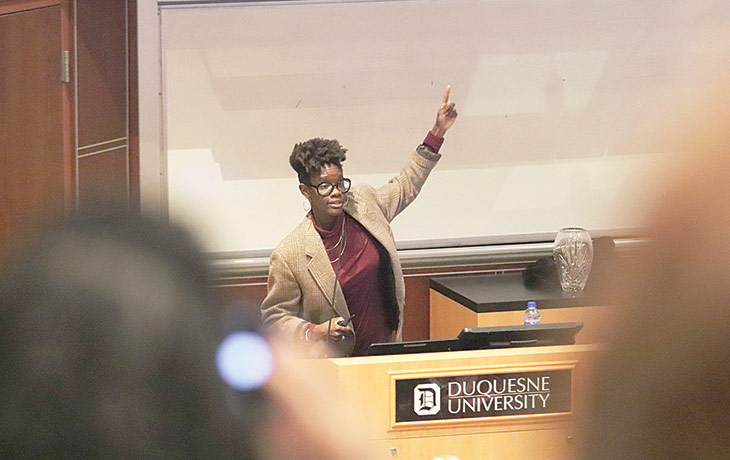 During the Nov. 14 announcement at Duquesne’s Pappert Lecture Hall, university president Ken Gormley and August Wilson House Executive Director Paul Ellis applauded Njie for her unwavering commitment to her craft and her focus on how African Americans perceive themselves and their experiences in the cities they call home. Njie’s work centers on everyday people, narratives and landscapes.